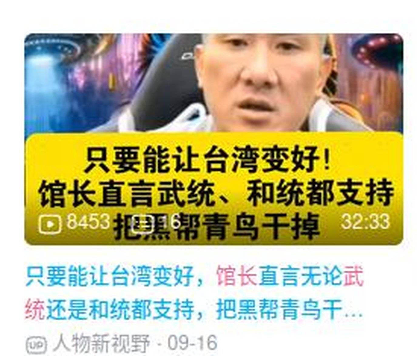 九月才在說,只要能讓台灣變好,館長直言無論武統還是和統都支持!