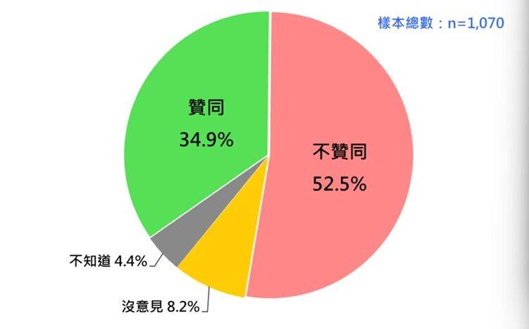 不贊同同,12.6%沒意見、不知道。不贊同者比贊同者多17.6個百分點。同時,有二成七