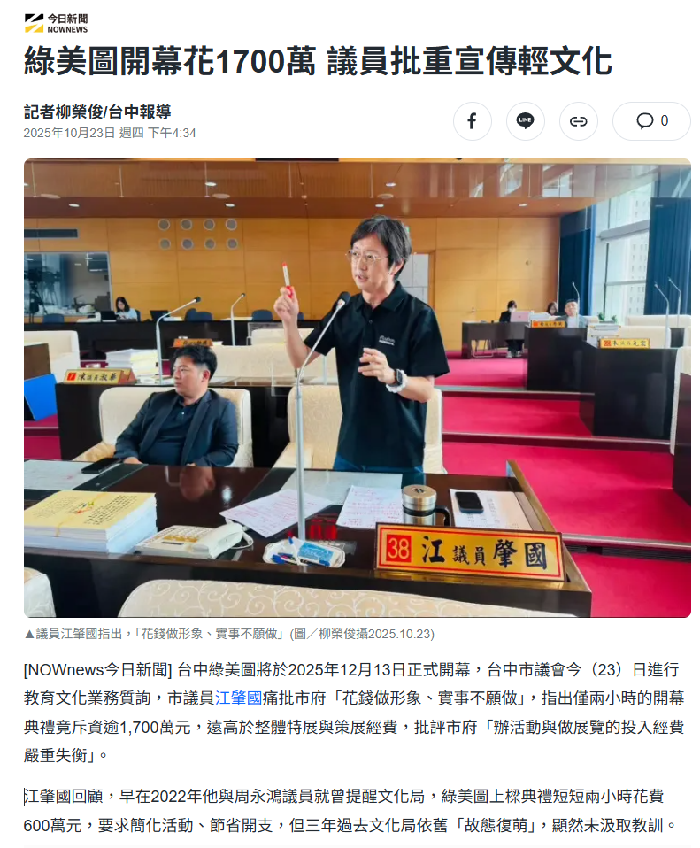 作者 s7503228 (情報屋)標題 [討論] 台中美圖的預算太酷了吧時間 Tue Oct 28 09:54:05 2025