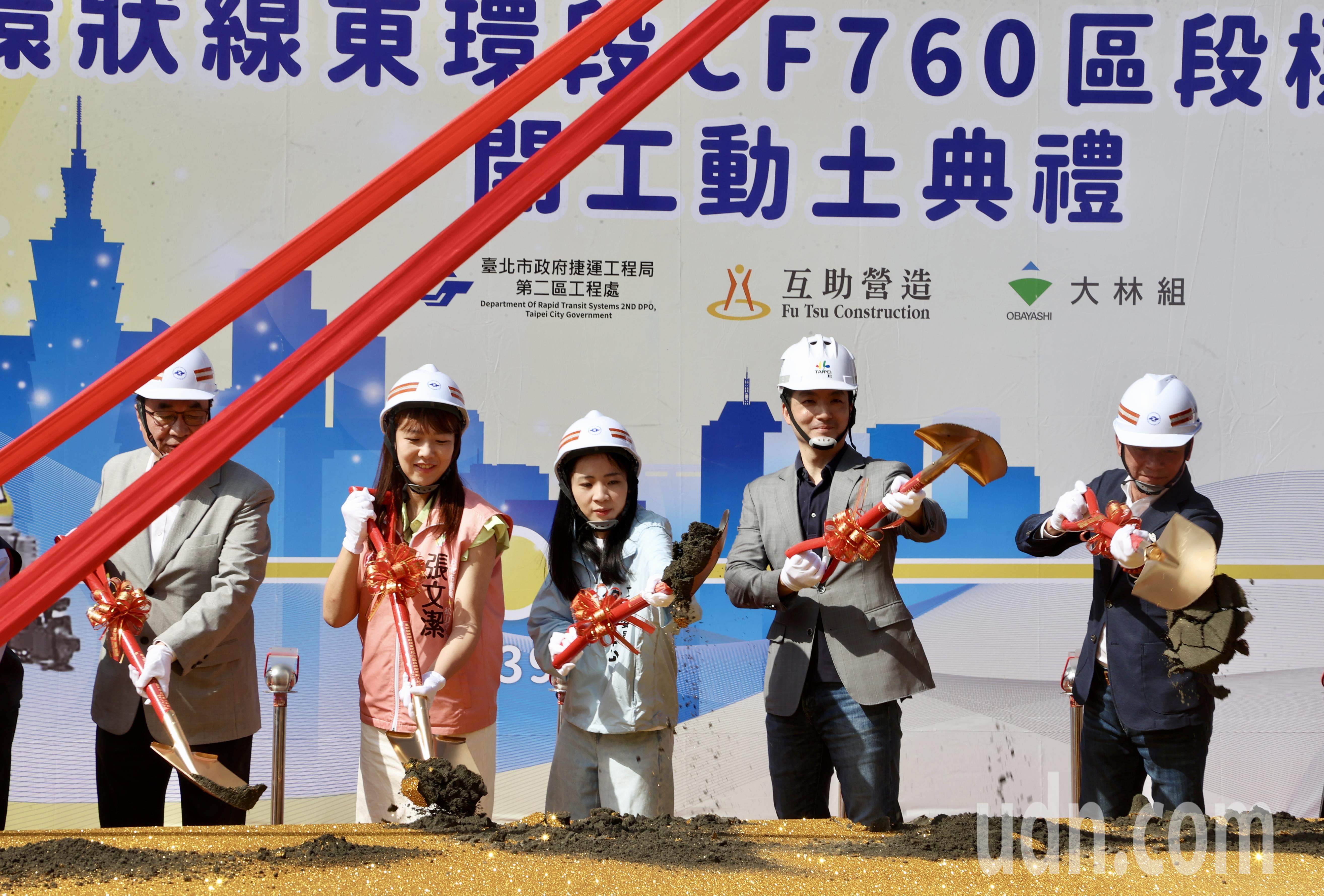 台北市長蔣萬安(右二)今天上午出席環狀線東環段CF760區段標工程開工動土典禮,並