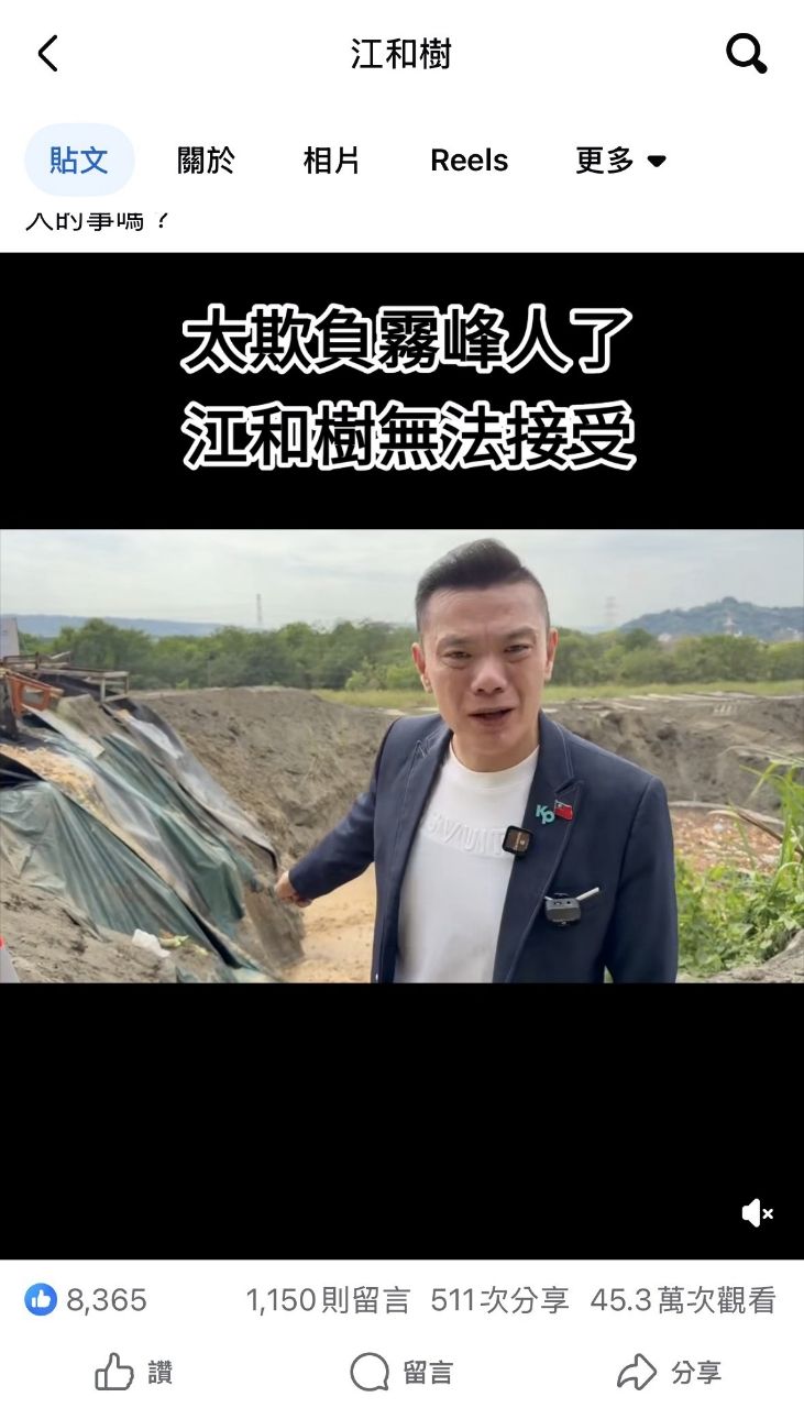 府團隊砲火猛烈的江和樹也前來留言,他稱,「盧媽媽道歉了,中央不用道歉嗎,市府的態