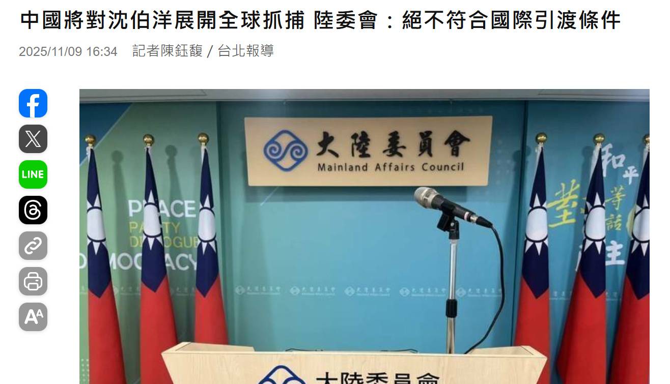 : 制裁這麼久還抓不到沈,代表台灣與中國