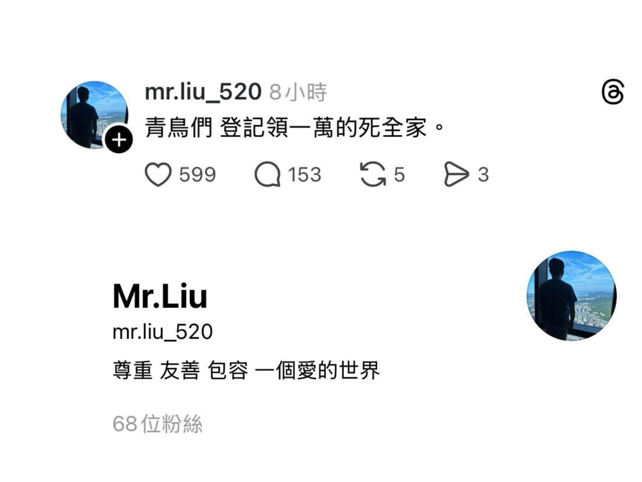 → meredith001: 他本人寫退休 不過被查到科技版求職8F 1.160.140.233 台灣 11/10 07:02