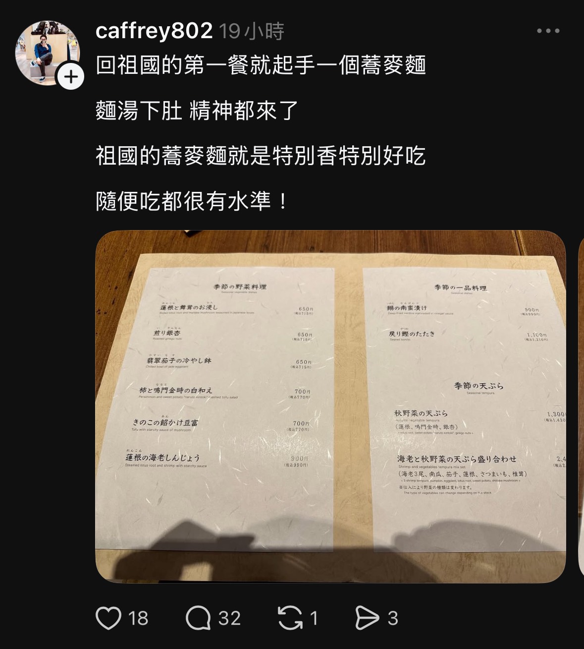 : 他拍的這張菜單是不是也沒有蕎麥麵啊