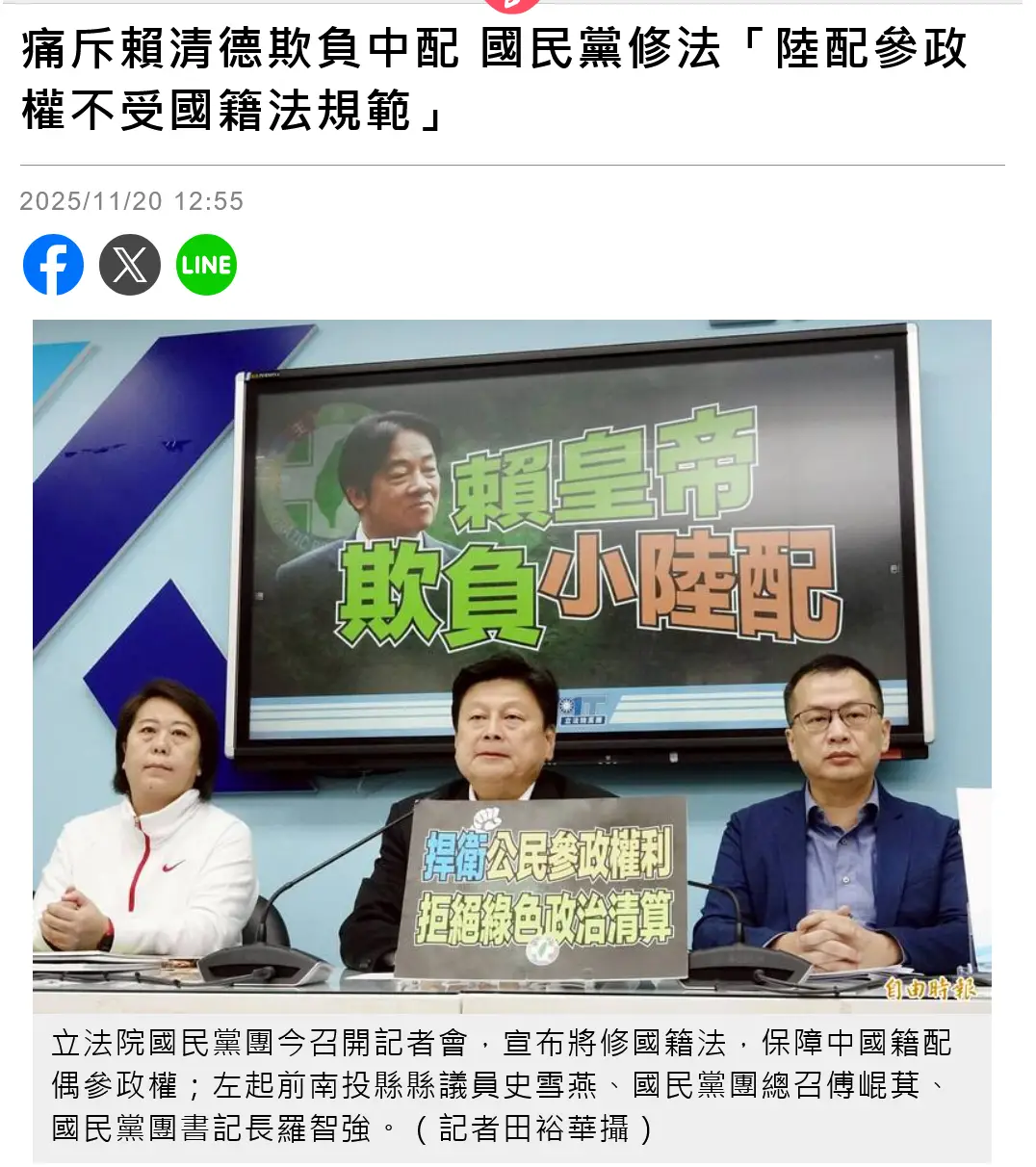 [黑特] 國民黨立委:「賴皇帝欺負小陸配」