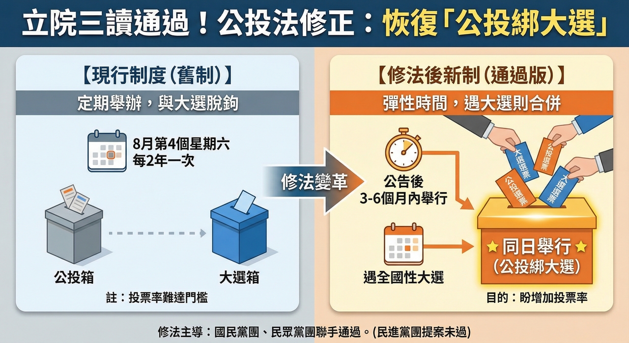: 公投綁大選以同意56票對不同意44票三讀通過