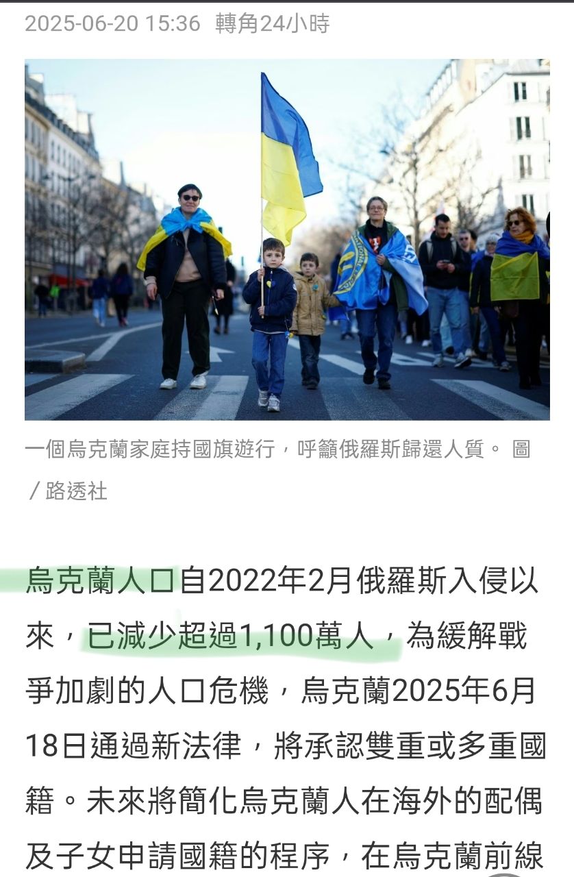 烏克蘭人口減少1100萬人