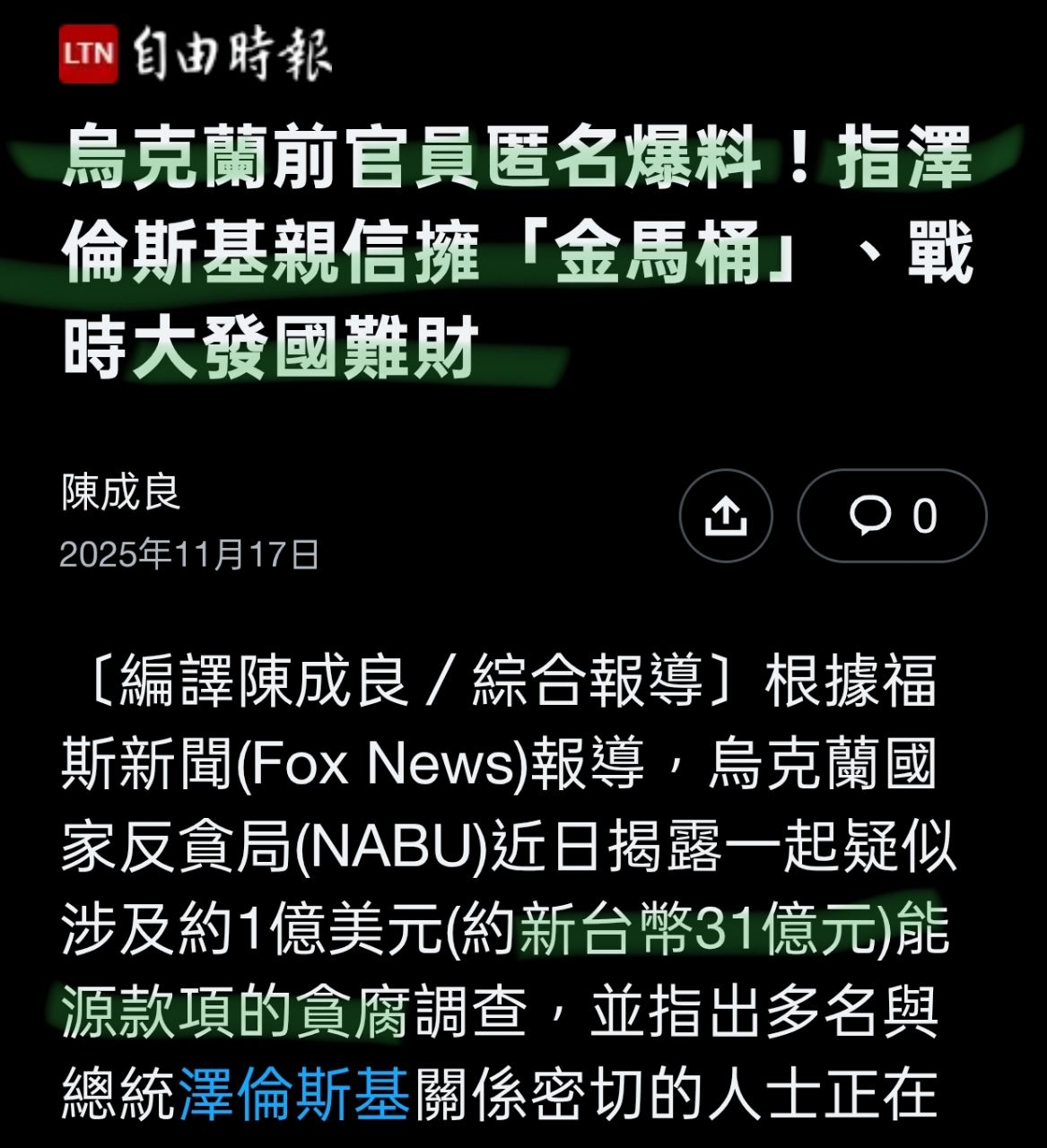 是看見烏克蘭官員貪污戰爭人命財
