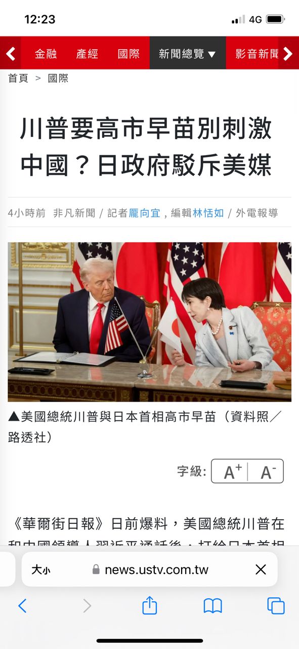 華爾街日報報導川普叫高市別刺激大陸。