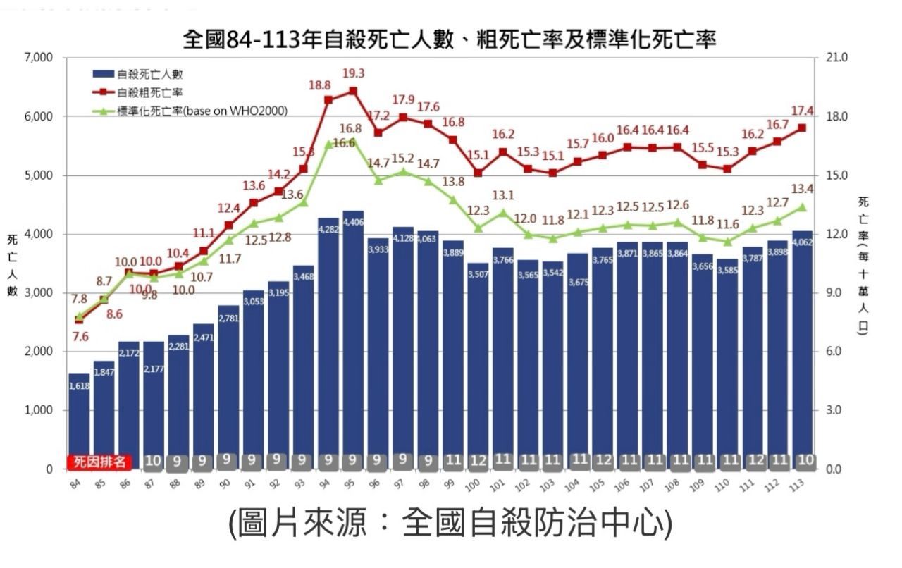 → undeadmask: 上圖全國自殺人數在馬時期最低是降到3509,結果近三年又爬升到破4000人,明明慘到過不下去想自殺的、被詐騙的在綠執政時期都是壓倒性的多數,綠畜還真有臉整天拿馬來救援40F 116.241.30.157 台灣 11/29 23:08