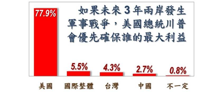 民進黨支持者也有71.6%認為川普總統會優先確保美國最大利益,國民黨支持者有85.6%作