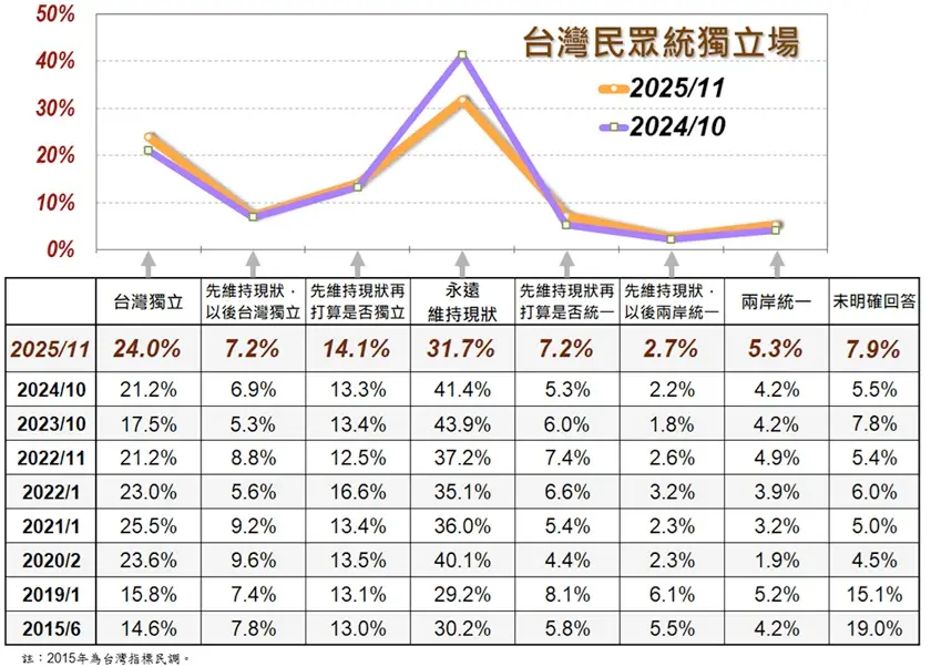 : 統獨立場 整體民眾維持現狀大降10% 統獨小升