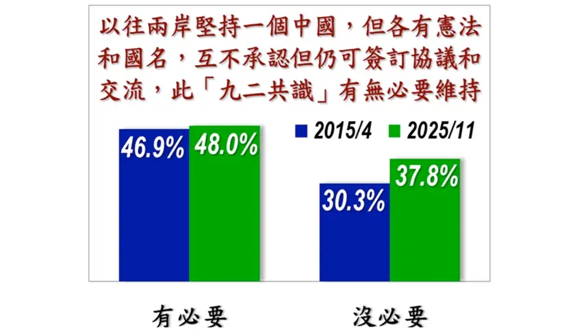 : 是否有必要維持九二共識 有必要還是多 但沒必要人數上升