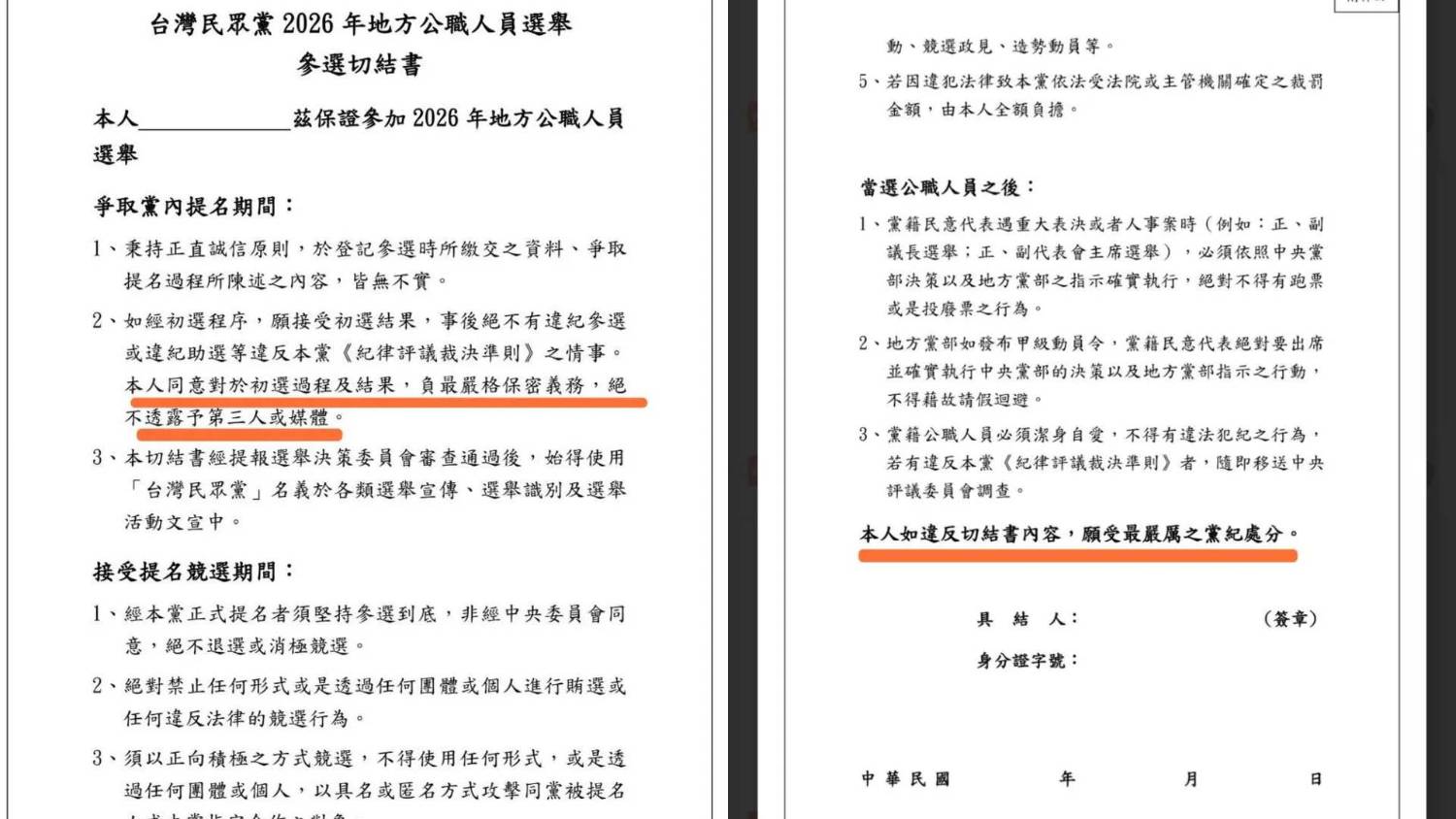 切結書約束,違反切結書內容會遭受到嚴厲黨紀處分。