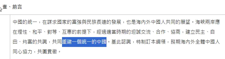 連以前的國統綱領說的都是