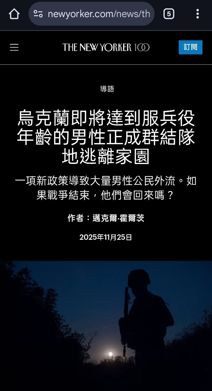 作者 kaminari22tw (拳擊袋鼠能暴漲數十倍的)標題 [討論] 美媒:烏克蘭青年成群結隊的逃離家園時間 Tue Dec 2 13:11:47 2025