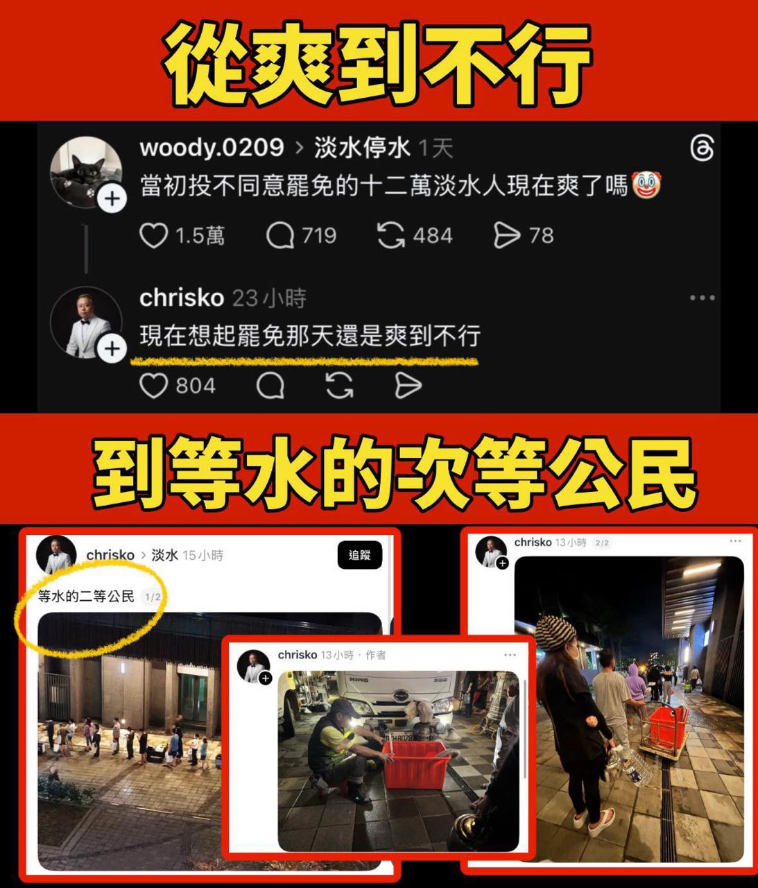 新北市政府施工挖破管線,造成淡水六萬多戶停水多日,連便利商店都買不到水,居民只