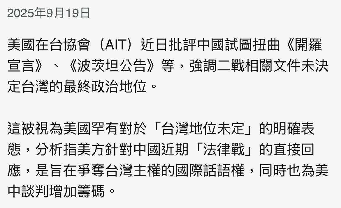合聲明,裡面只說堅持《波茨坦公告》第八條,根本就是故意耍中共,但中共還喜孜孜到