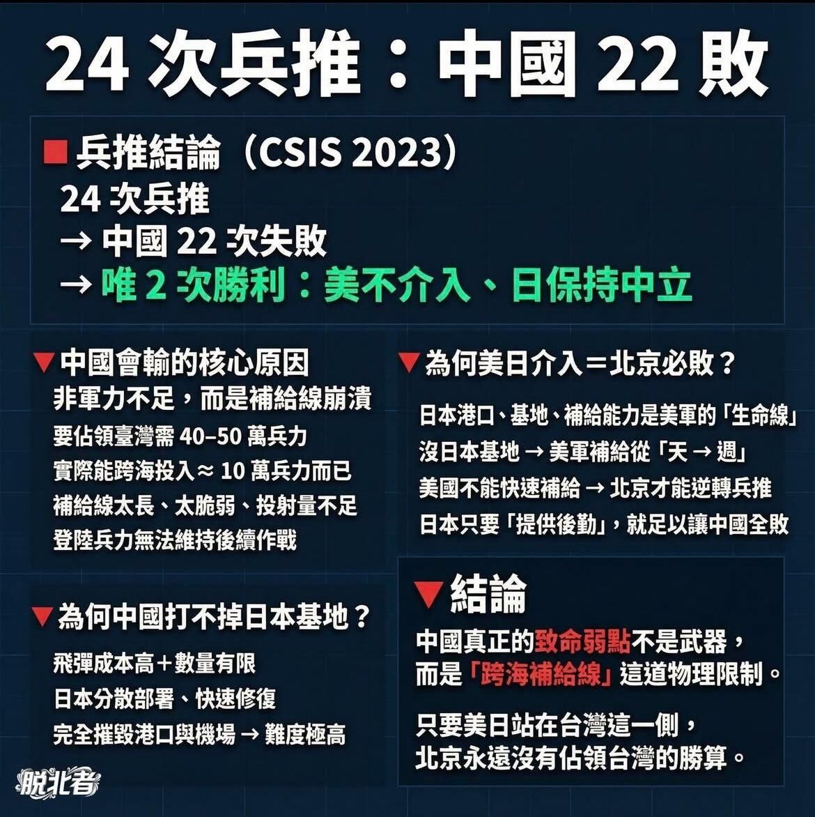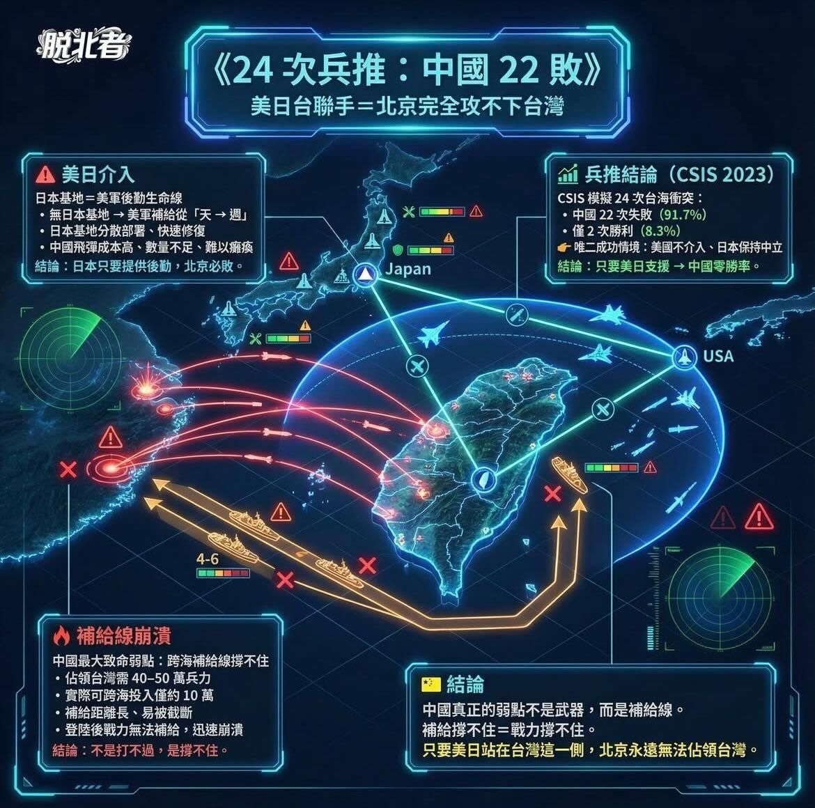 籍,證明若中國真的動武,美國、日本是否介入干預,將直接決定解放軍攻台的成敗。該