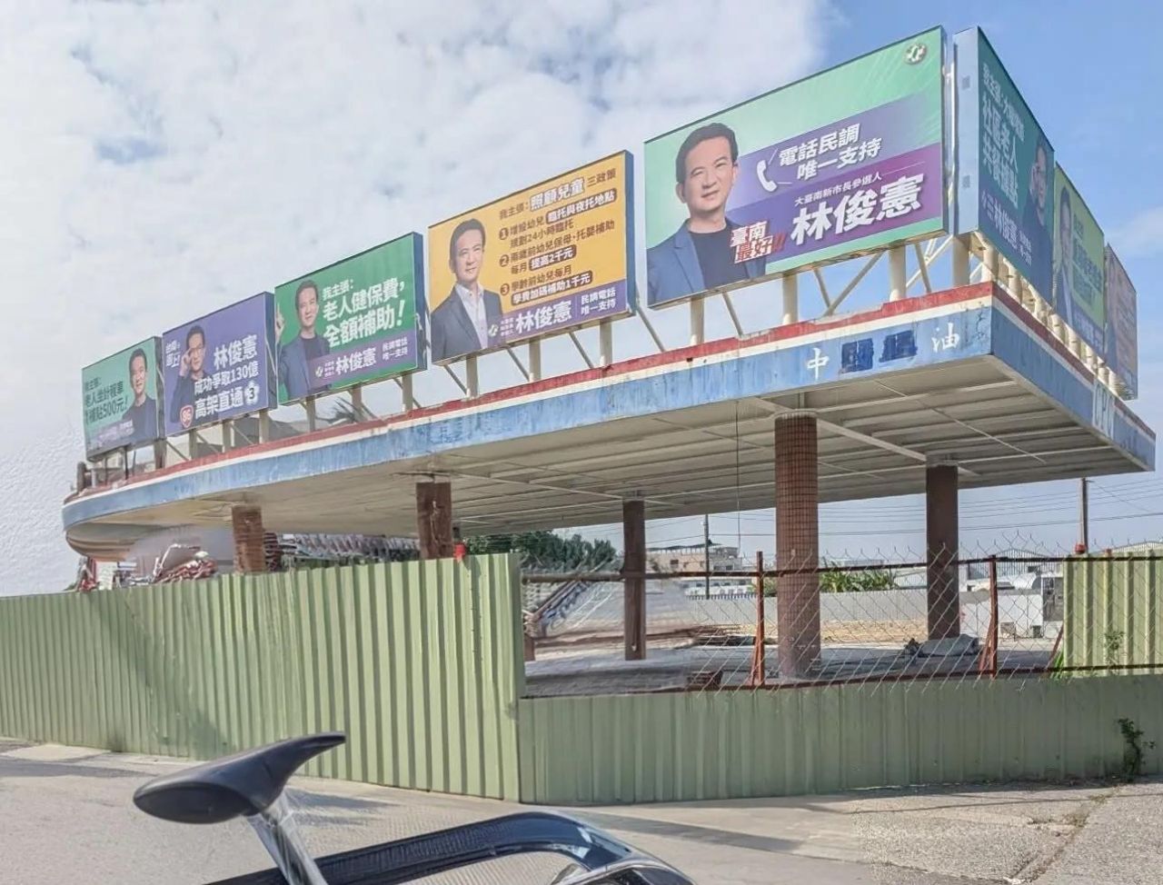 台南市立委林俊憲為了選台南市長真的拼盡全力在設看板欸