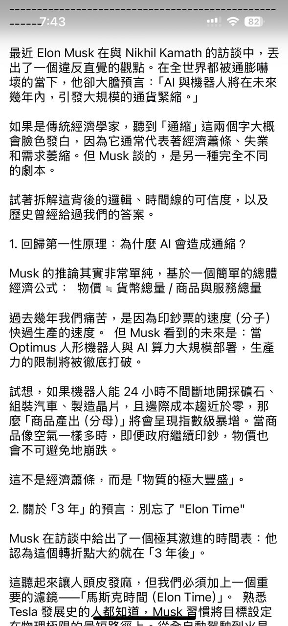 [討論] 中國的通縮其實是馬斯克預言的未來