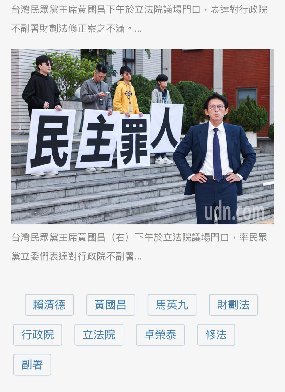 影/卓揆不副署財劃法 黃國昌籲總統懸崖勒馬:獨裁成為事實人民將發出怒吼 | 朝野僵局議案卡 | 要聞 | 聯合新聞網