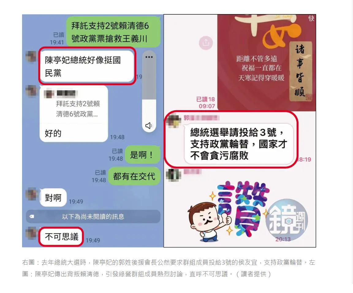 陳亭妃總統支持國民黨" 這種截圖都出現了