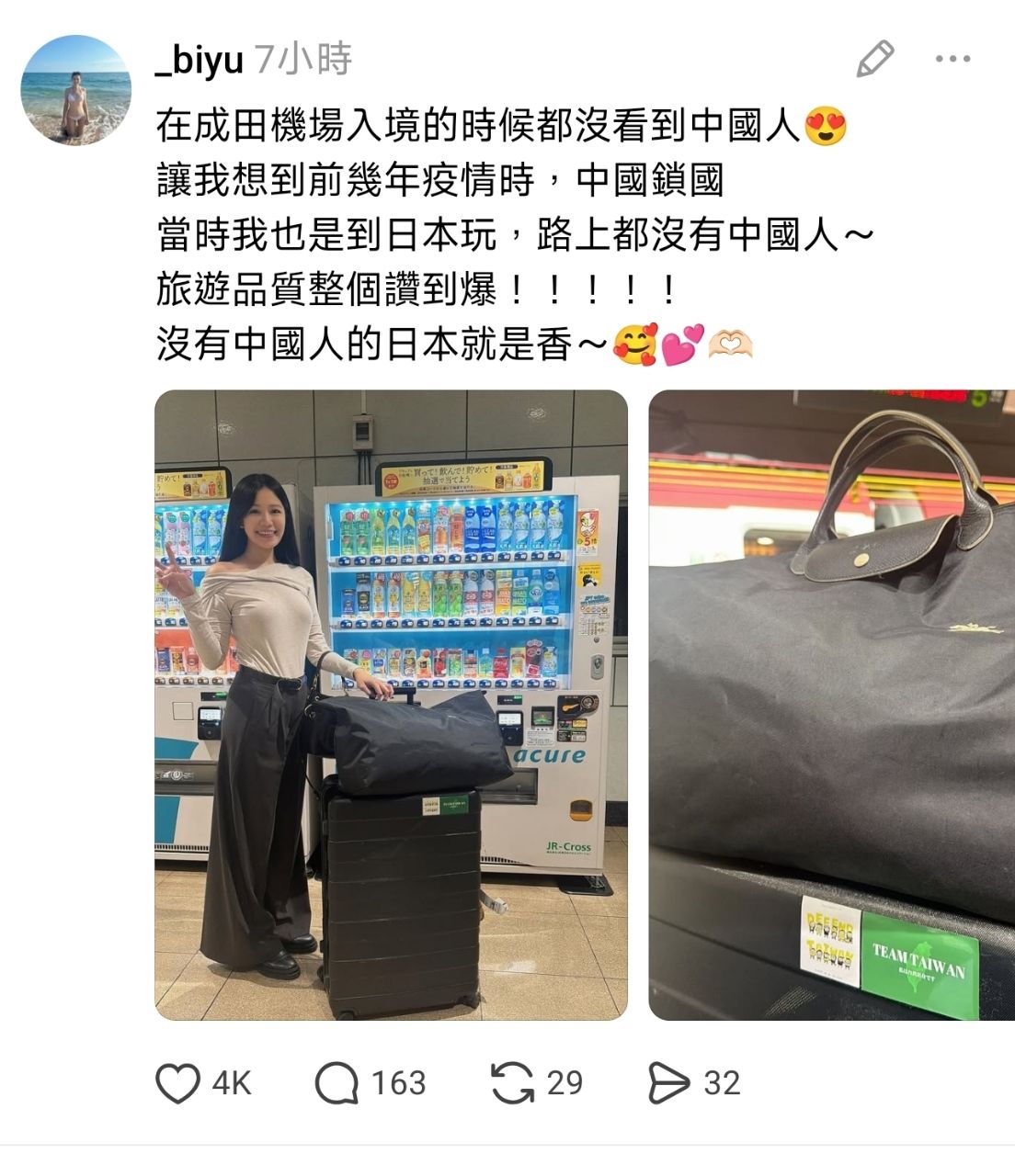 她覺得在機場沒遇到中國人很開心,類似的文章看了好幾篇,去看自介毫不意外都是青鳥