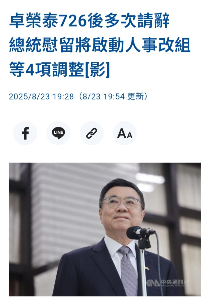 作者 Ieynoi (綽號暱稱)標題 [黑特] 卓榮泰726那天不是就想辭了?時間 Wed Dec 17 21:00:03 2025
