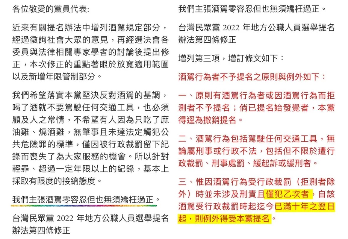 而且脆上有人說到民眾黨有酒駕一容忍條款