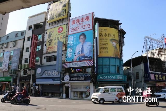 黃國昌位於新莊的看板,距離陳世軒服務處僅400公尺。(中評社 鄭羿菲攝)