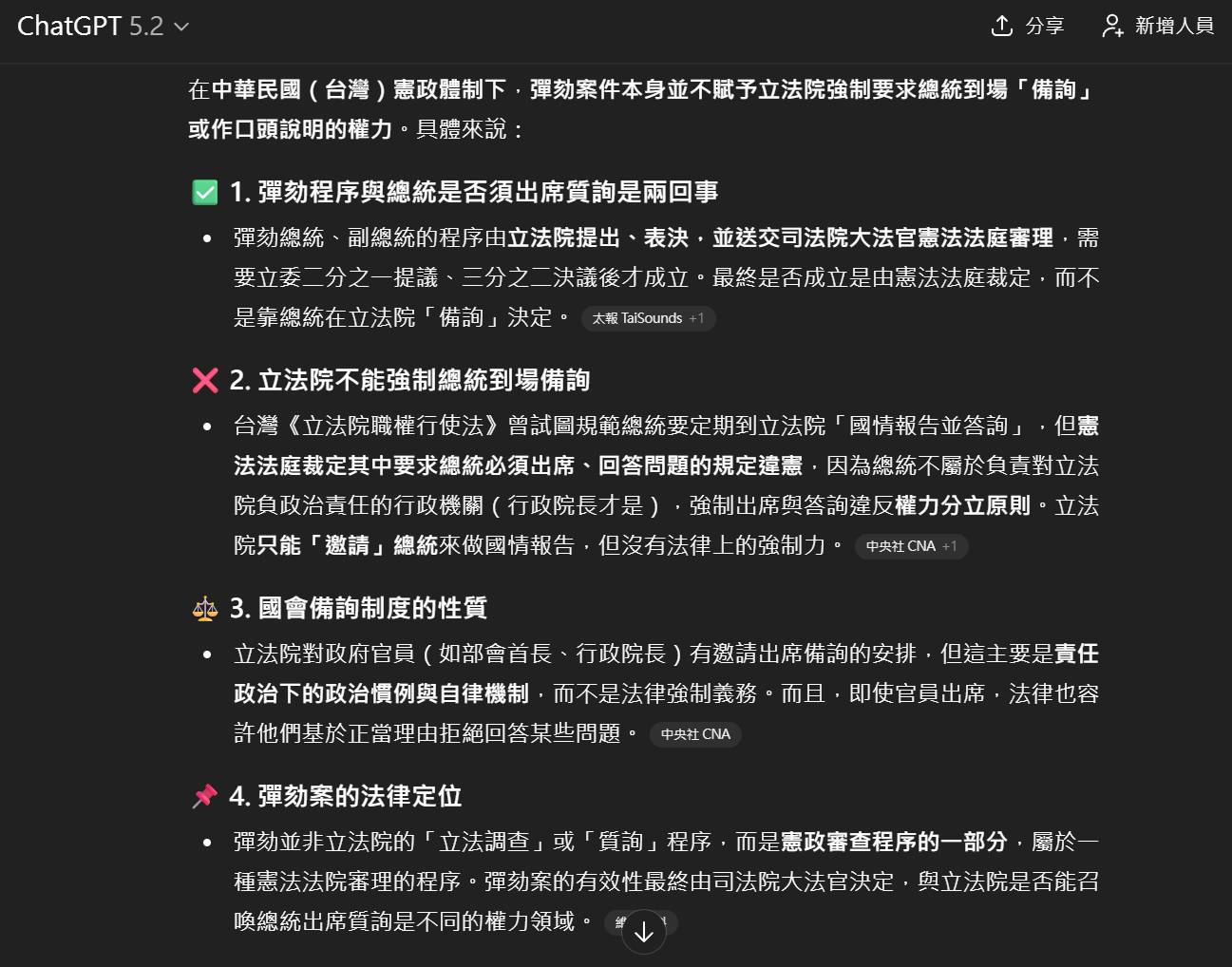 : 5. 彈劾成功是不可能的,但是清德宗馬上就要到牠最不想去的藍白立法院說明了