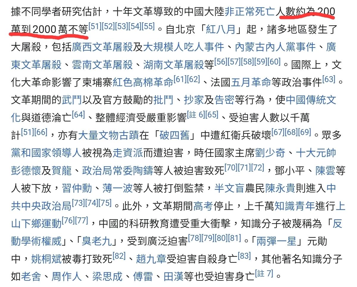 → wallowes: 你還沒回答我文化大革命跟大饑荒殺了多少中國人耶。
