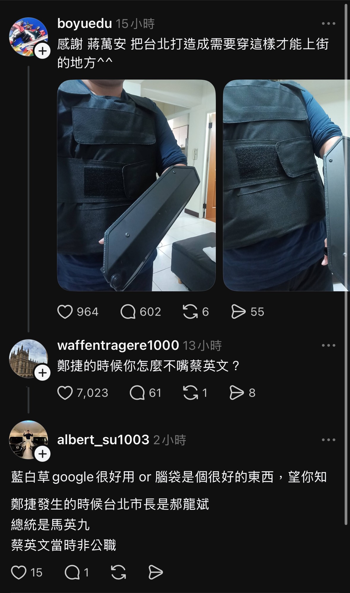 結果有人在檢討蔣萬安抵下留言: