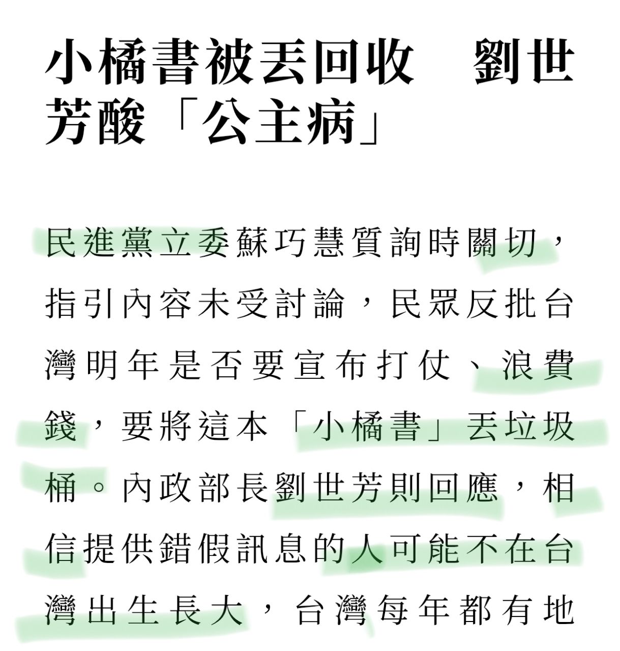 民進黨立委蘇巧慧質詢,小橘書是否有提到如何應處類似張文案件,劉世芳