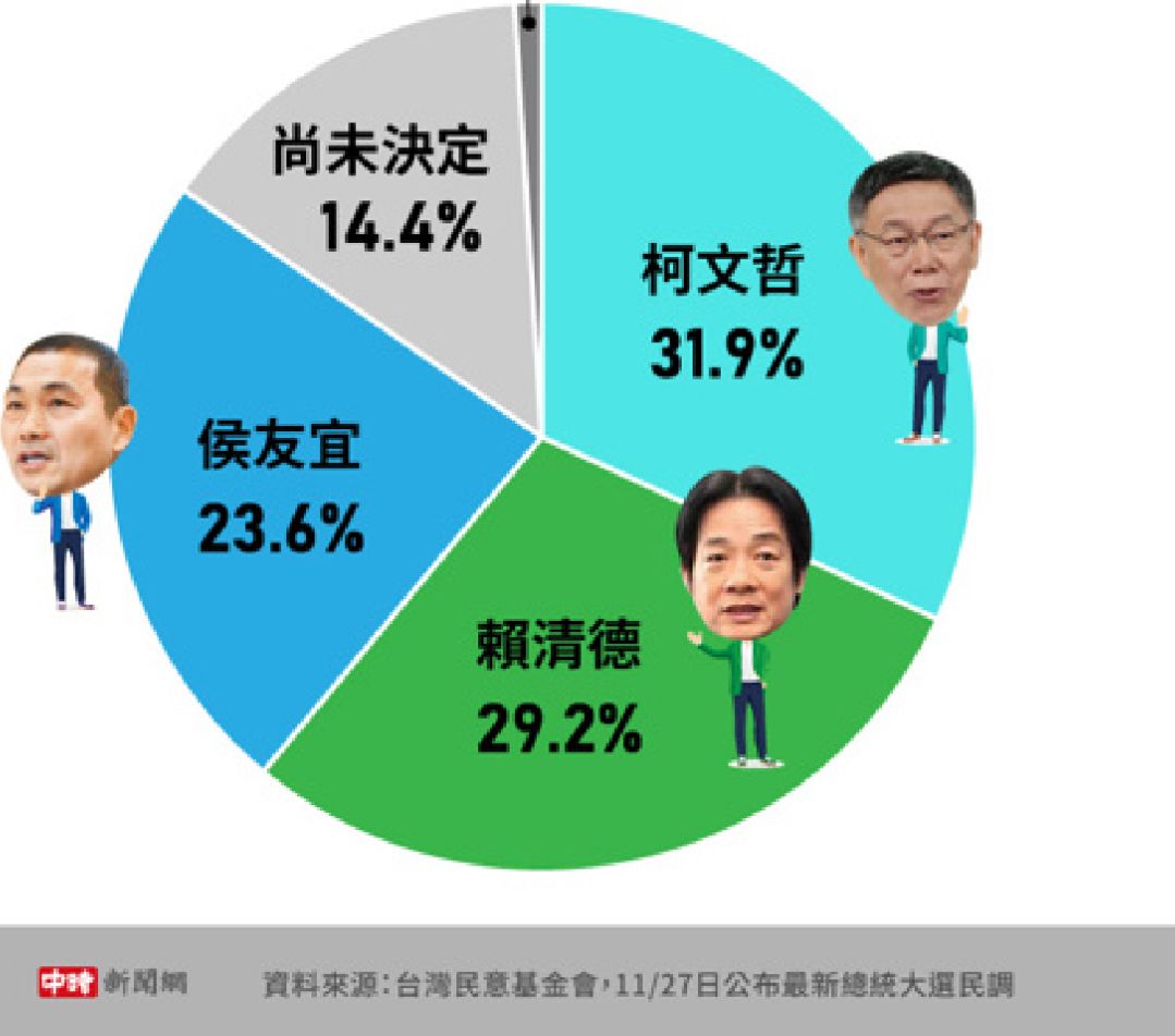 百分點;民眾黨小幅上升2個百分點;中性選民則下滑2.5個百分點。