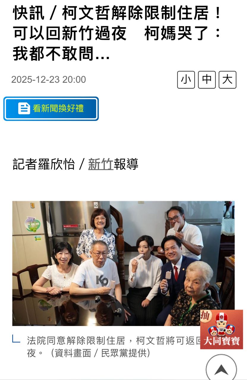 作者 thouloveme (赫赫)標題 [討論] 柯文哲解除限制住居時間 Tue Dec 23 20:18:23 2025