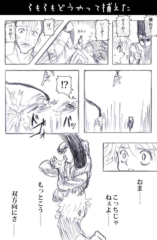 (兩人一起衝向信長往兩側跑,而奇犽發現原本應該往左的大傑卻跟著他往同方向跑....)