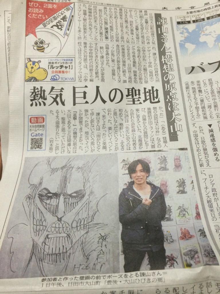 諫山 創先生與他的編輯?在11/1的時候在他的家鄉辦的活動,根本衣錦還鄉!
