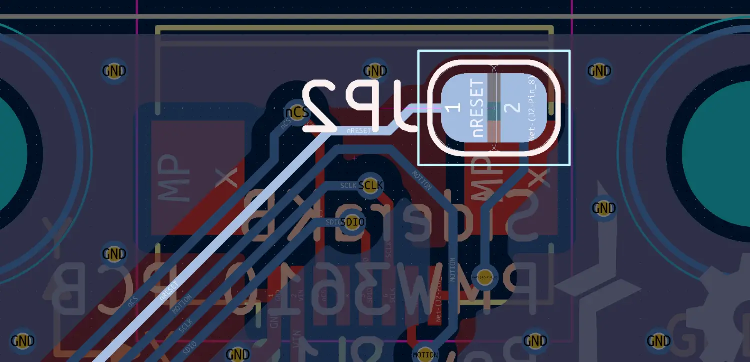 PMW3610 板也有一個小更新,就是在 FPC 和 Reset pin 間加一個 jumper
