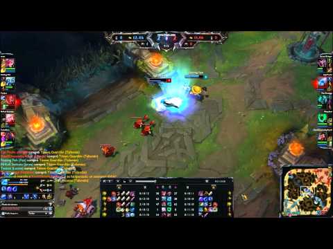 灌水搶2,從草叢E出來把雷茲撞離他們小兵堆,然後追著QA+點燃