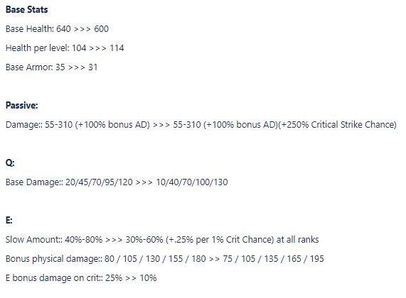 E暴擊傷害加成由125%下調至110%