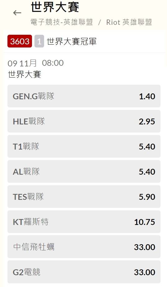 : : 17強都還沒開打 T1和IG賠率就比別人還低XD