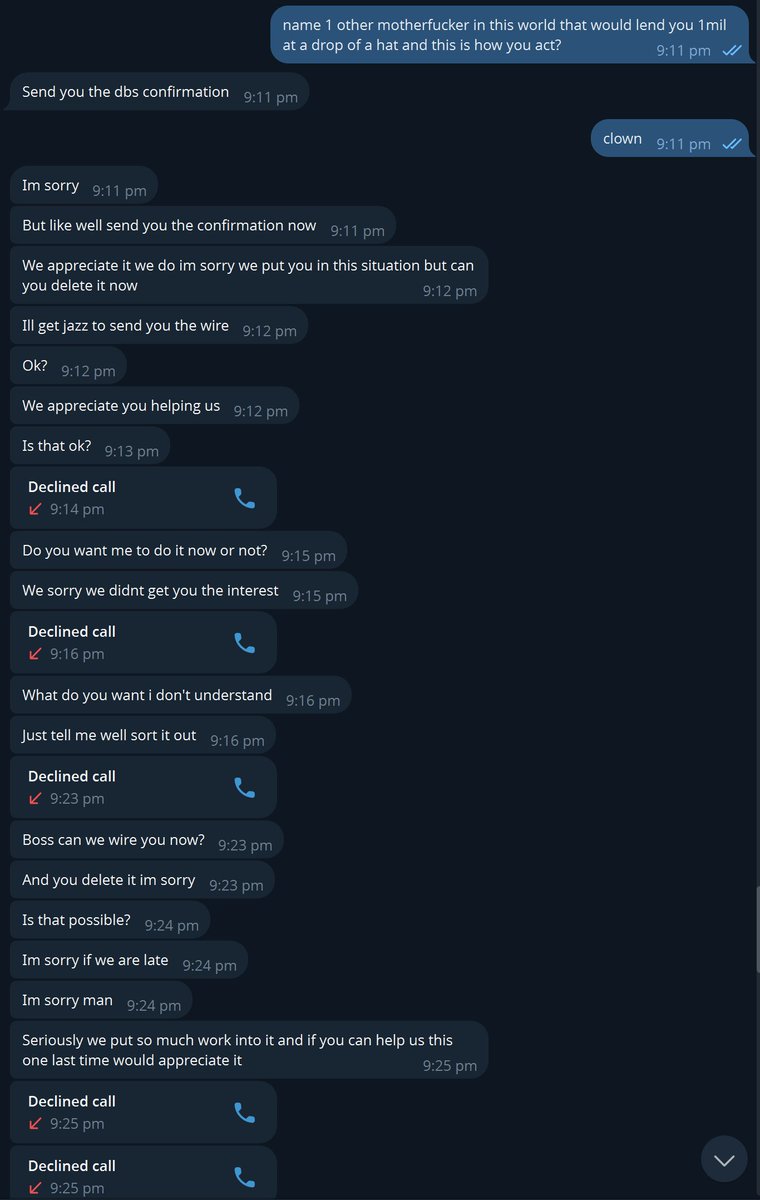 hedgedhog7:講得出來嗎,這世界上還有哪個王八蛋能在一秒內就借你一百萬?而你他媽