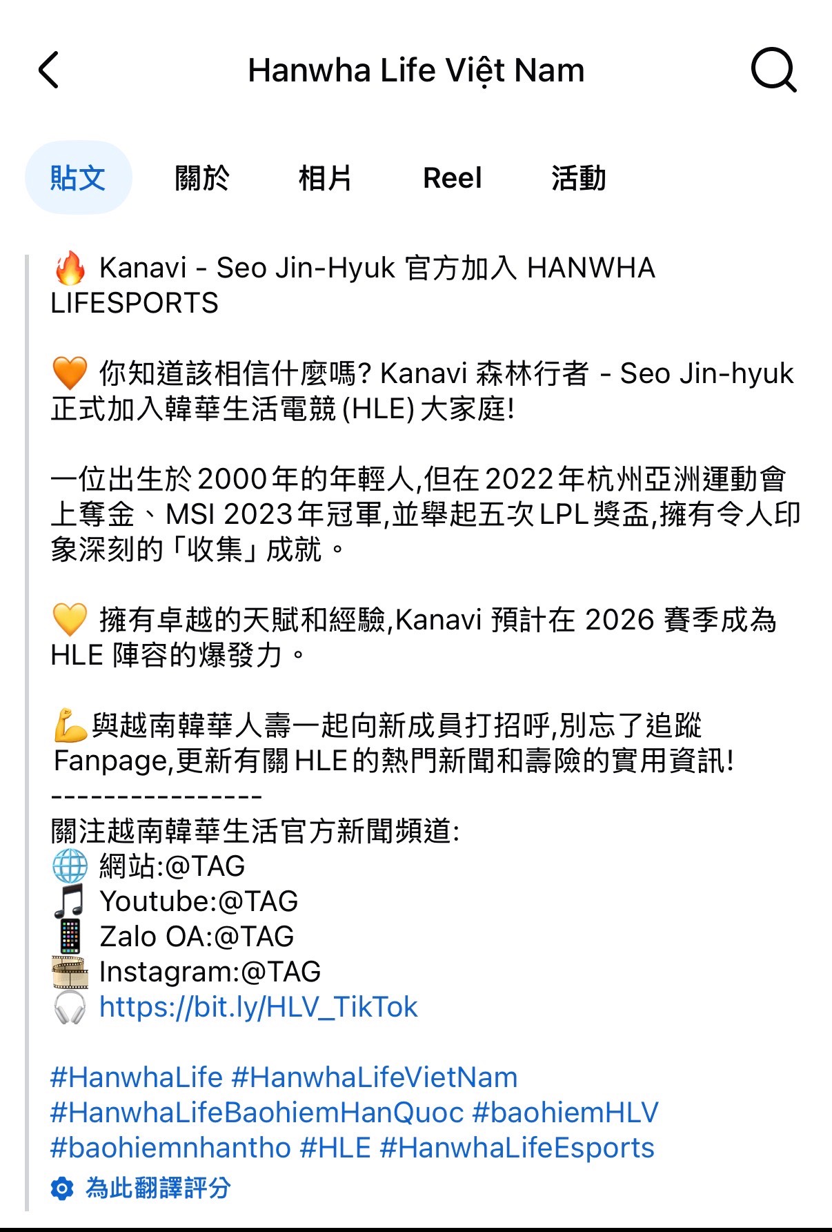 看板 LoL作者 stan1231 (山豬)標題 [情報] HLE FACEBOOK (welcome kanavi)時間 Thu Nov 20 16:51:52 2025