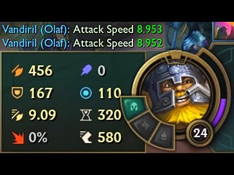 歐拉夫 搭配新的致命節奏 攻速超級快 這個攻速%數 真的是令人懷疑平衡的人是改完沒測試過 還是他的腦袋出了問題