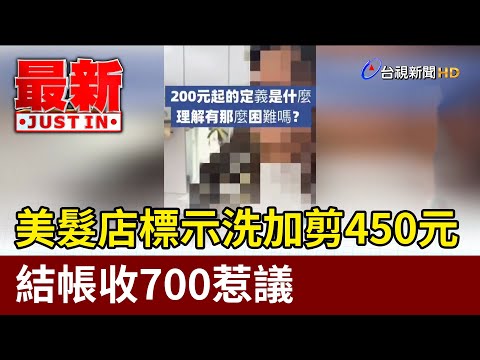 ,結帳時卻被收700元,業者解釋女生洗精油護髮350元加剪髮350元,外面標示也寫「450