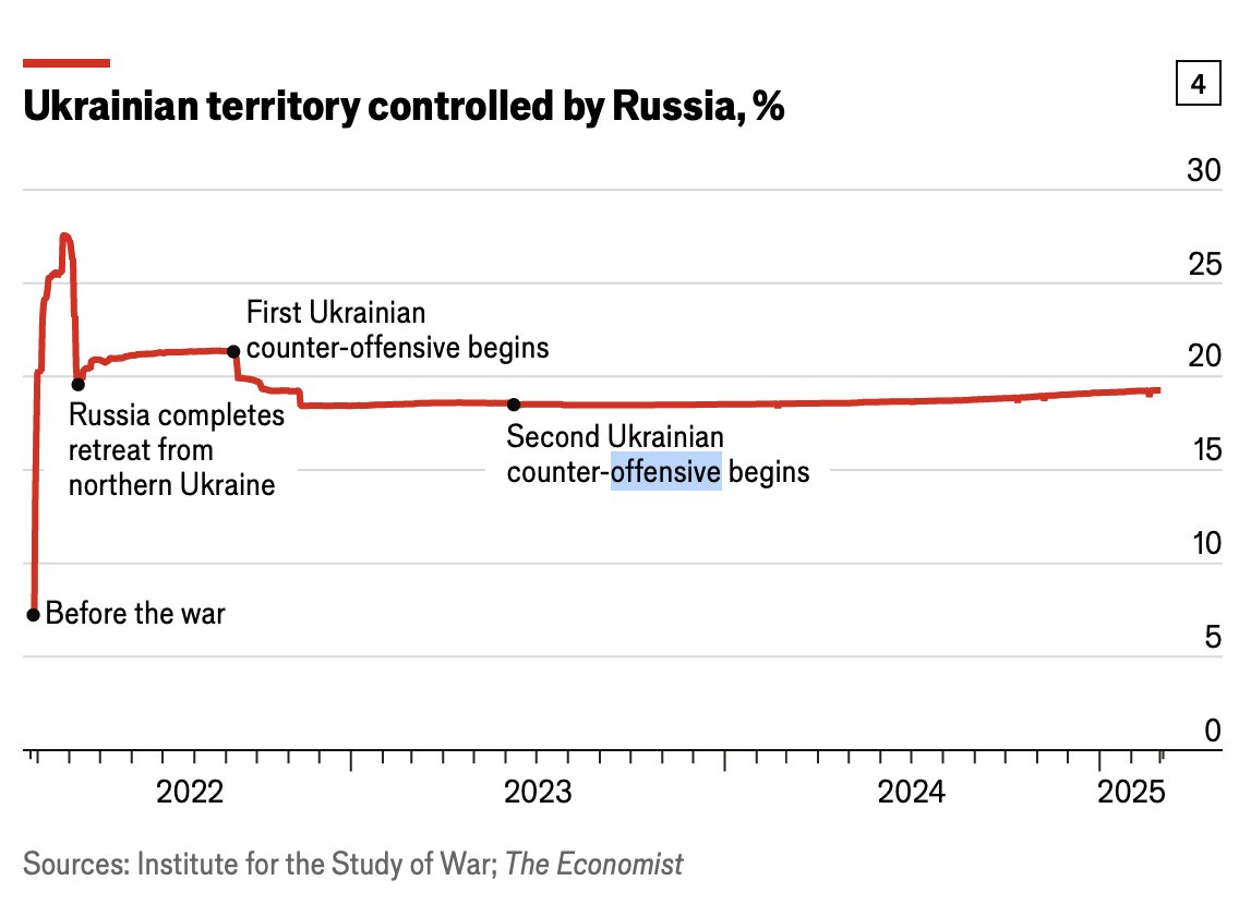 2024年僅佔領了烏克蘭0.57%的領土。以這一速度,俄羅斯的軍隊需要再花141年才能完全