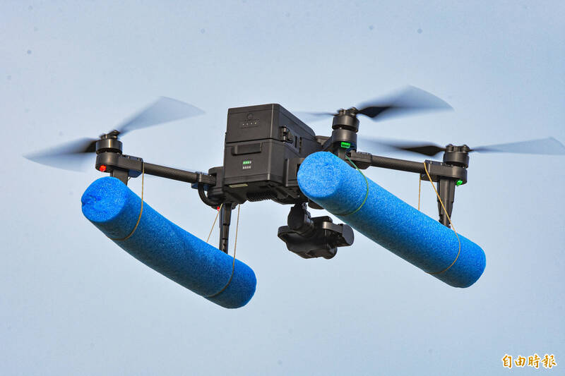 操作「監偵型無人機」,在灘岸一帶進行空中偵