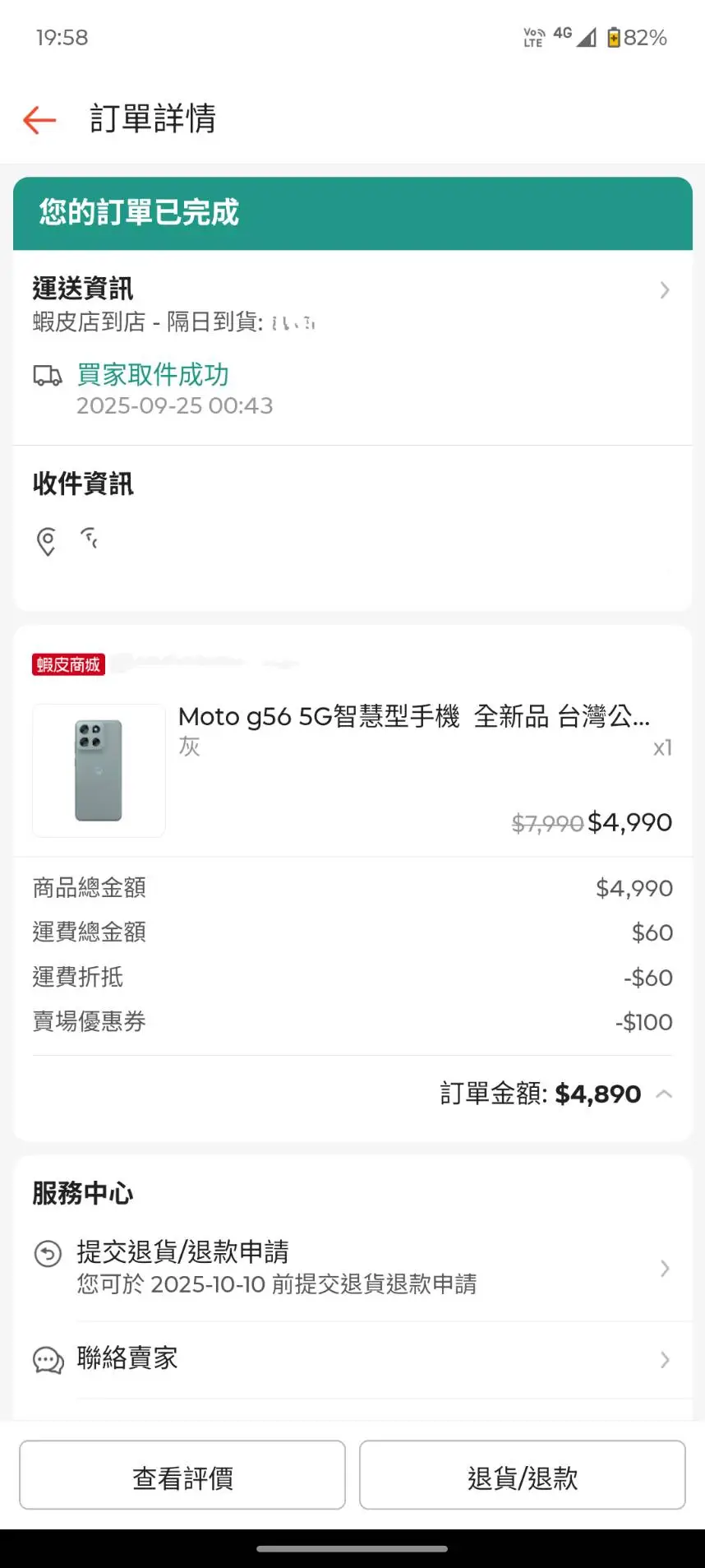 轉頭選擇了在蝦皮上買moto g56。($4890)